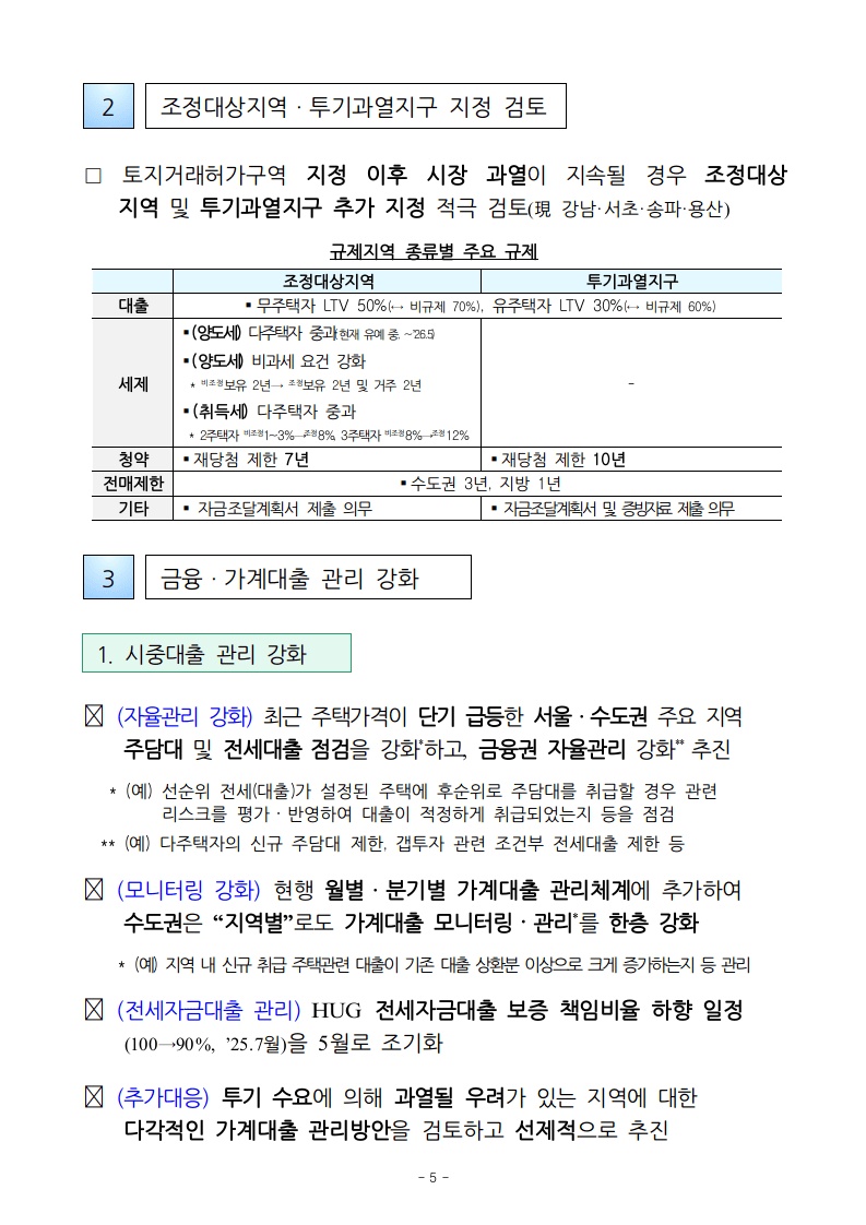 - 주담대 및 전세대출 심사 강화, 금융권 자율관리 촉진.