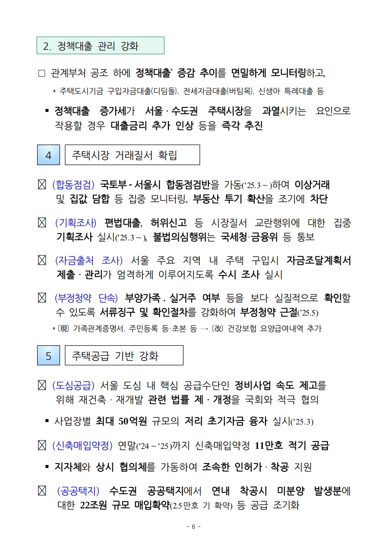 - 편법 대출, 허위 신고 등에 대한 집중 기획조사.