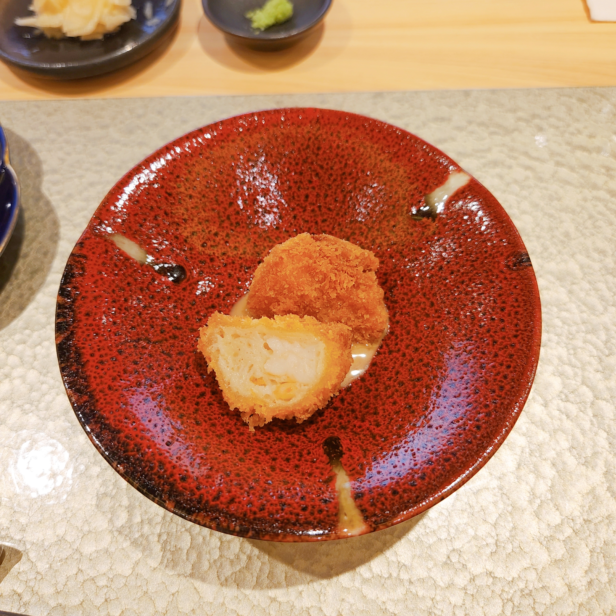 또한 ‘단새우&우니’, 숙성된 ‘참치 아카미’와 ‘참치 오도로’는 깔끔하면서도 깊은 맛을 선사해 주셨으며, ‘아귀간’과 ‘새우 고로케’로 중간에 잠시 쉬어가는 타임도 마련되어 있었습니다.