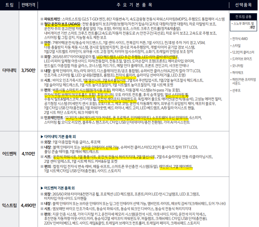 픽업트럭은 보통 상용차로 여겨져 개인이 구매하는 경우가 많지 않았지만, 타스만은 아웃도어 활동을 위한 세컨카로도 충분히 매력적인 선택지가 된다. 국내 출시 가격은 3,750만 원(다이내믹 트림)부터 시작되며, 이는 경쟁 모델인 포드 레인저나 쉐보레 콜로라도와 비교했을 때도 상당히 경쟁력 있는 가격이다.