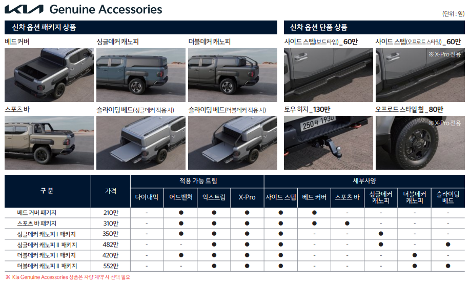 적재 공간도 넉넉하게 설계되어 있어 캠핑 장비, 바이크, 낚시 도구 등 다양한 짐을 실을 수 있으며, 실내 또한 픽업트럭임에도 불구하고 최신 SUV와 견줄 만큼 편안한 구성을 갖추고 있다.