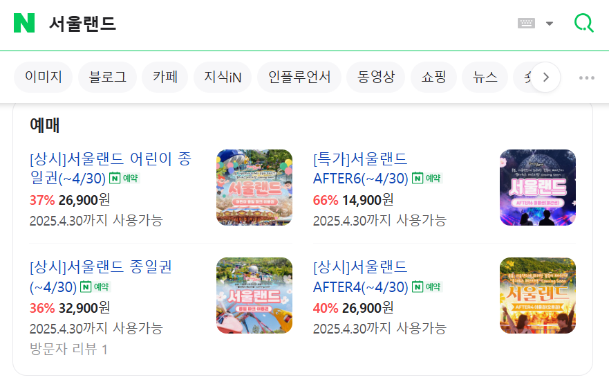 하지만 막상 예매하려고 보면 티켓 가격이 은근 부담되죠. 오늘은 제가 찾은 네이버 검색가보다 저렴하게 서울랜드 자유이용권을 구매하는 방법을 소개해드릴게요!