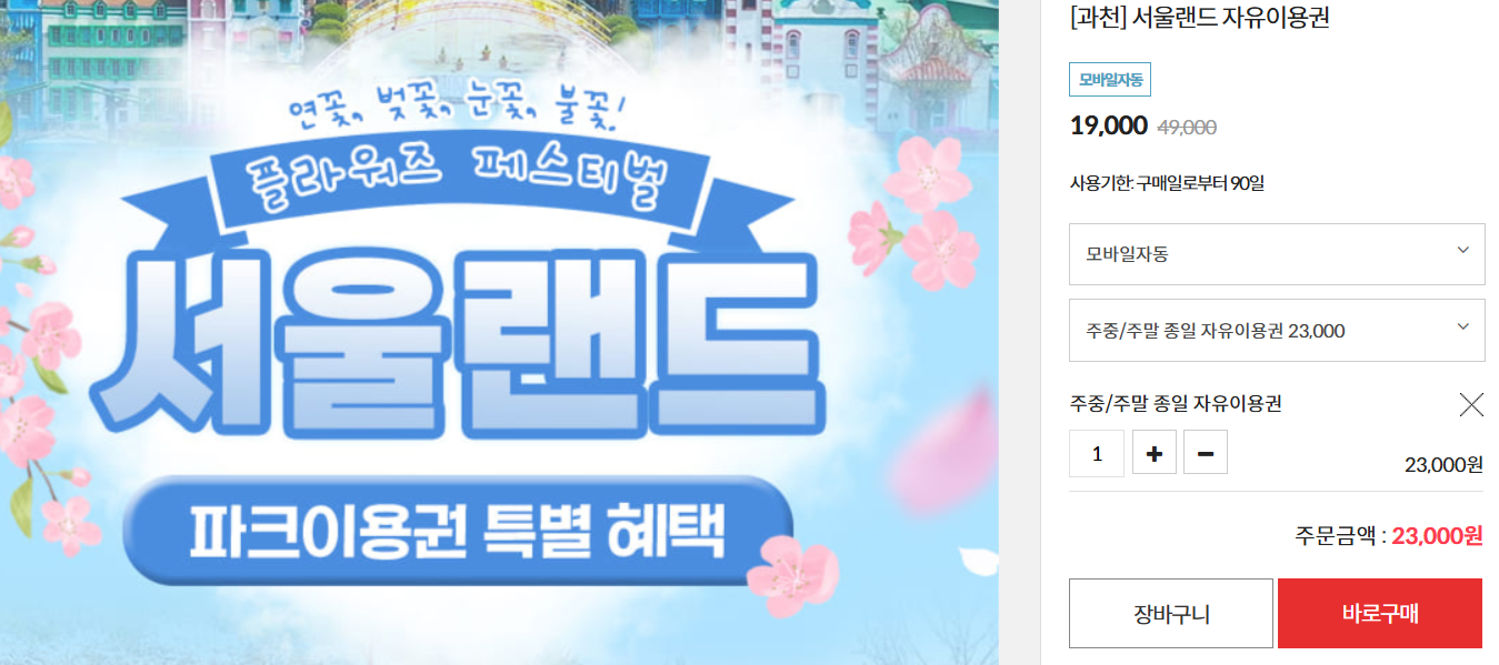최근 우연히 알게 된 티켓 특가 사이트에서 서울랜드 종일권을 대인 기준 23.000원에 구매했습니다.