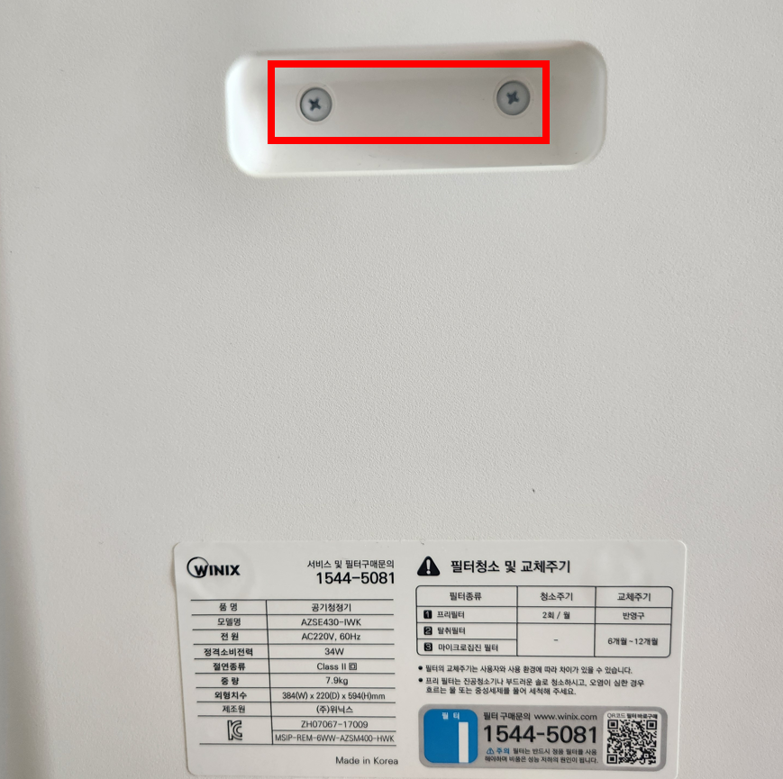 분해를 시작하기 전, 전원 플러그를 꼭 뽑아주세요. 그리고 준비물로는 '십자 드라이버' 단 하나!! 이렇게 생긴 공기청정기 위닉스 제로S에 대한 분해 설명이에요^^
