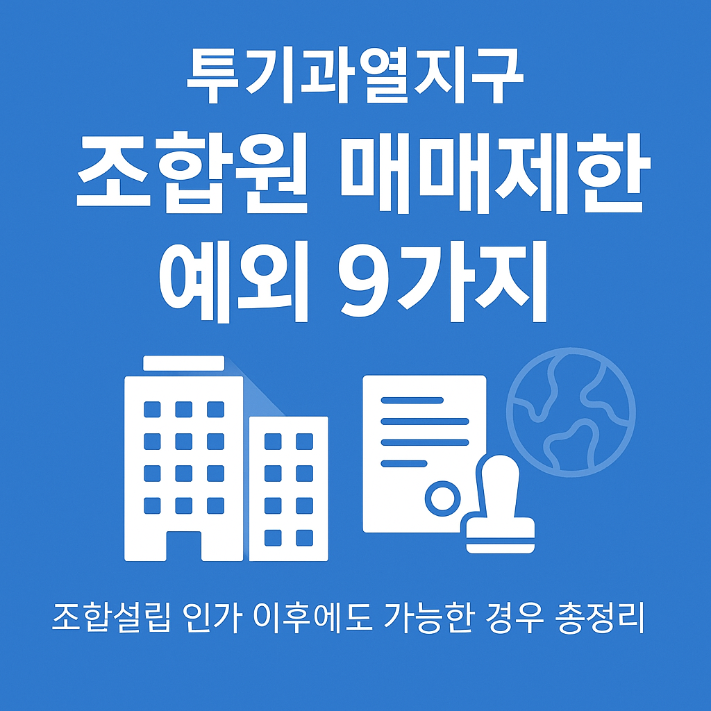 재건축·재개발 투자에 관심이 있는 분들이라면 한 번쯤은 “조합원 지위 양도 제한”이라는 말을 들어보셨을 것입니다. 특히 1015 부동산 대책으로 투기과열지구로 지정된 지역의 경우, 조합 설립 인가 이후에는 일반적인 매매가 사실상 불가능해집니다. 하지만 몇 가지 법적 예외 사유에 해당한다면, 조합 설립 인가 이후라도 조합원 지위를 양도할 수 있습니다.