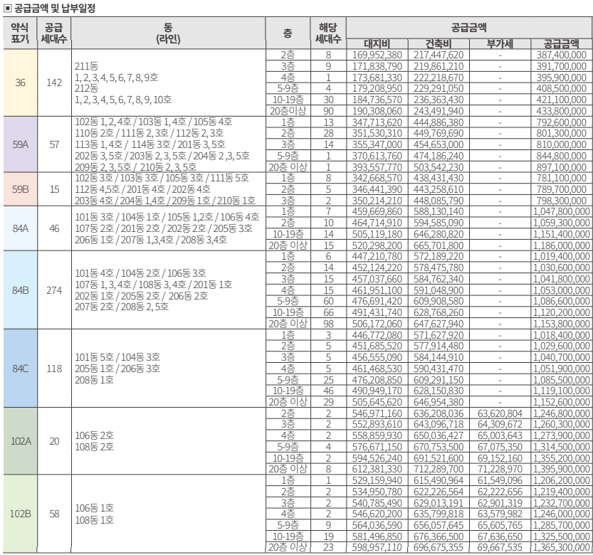 - 남향이 대체로 선호되지만, 고층은 조망권이 뛰어나 가격이 다를 수 있음