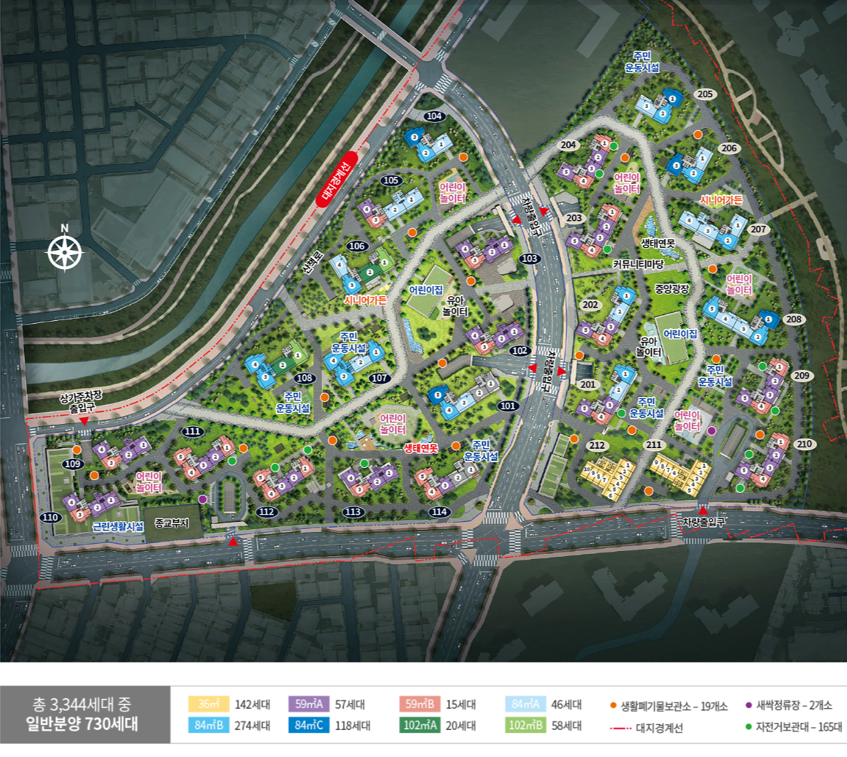 - 중앙광장과 산책로, 어린이 놀이터가 풍부하게 배치되어 가족 단위 거주자에게 최적화